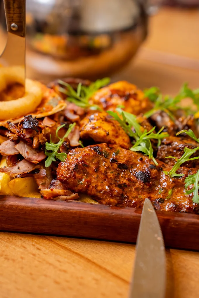 (Côtelette d’agneau, bœuf, poulet, steak, fromage, kebab, kefta, pizza turc amour)